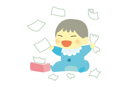 散らかす、場所や面を不要な物でいっぱいにして使いにくくする