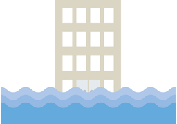 大量の水が低い所に押し寄せて土地や家を水で満たす