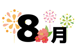 夏の真ん中にある月で、学校が夏休みの時期でもある8月を表す。